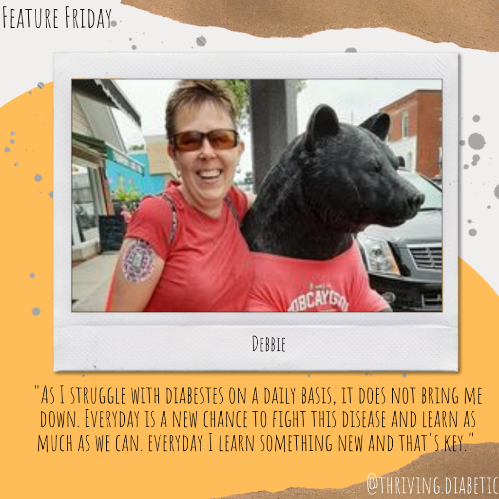 Feature Friday: Debbie English Intro This week’s Feature Friday is with Debbie English! Debbie is from Peterborough in Ontario, Canada. This is about 2 hours from where insulin was discovered! How cool! She is a 51 year old, school bus monitor who also just so happens to have Type 1 Diabetes. Debbie is a great voice …